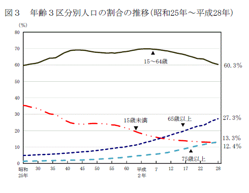 65歲以上的人口比重已經上升至紀錄新高的27.3%,而15歲以下人口占比則跌至紀錄新低。15-64歲的勞動力人口繼續(xù)下滑至60.3%,為1951年以來最低。