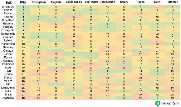 報(bào)告評(píng)估了不同國(guó)家本地人才數(shù)量、工資水平、生活開銷、網(wǎng)速、商業(yè)開發(fā)水平等不同情況。他們發(fā)現(xiàn)新加坡正在成為亞洲技術(shù)人才的新寵,因?yàn)檫@里的營(yíng)業(yè)稅低于其他國(guó)家,技術(shù)公司更容易起步和經(jīng)營(yíng)下去,而且各類互聯(lián)網(wǎng)設(shè)施的建設(shè)也較為完善。新加坡政府此前還投入了190億新元以開發(fā)地方工程系統(tǒng),這些利好政策吸引了不少像推特、領(lǐng)英和臉書這樣的科技公司進(jìn)駐。去年底,谷歌在新加坡的辦公室將工程師數(shù)量擴(kuò)招到1000人。