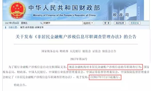 7月1日起,華人海外資產(chǎn)將被清查!PR、TR、留學(xué)生皆受影響!關(guān)于中國版CRS,你需要知道這些事!近日,中國國家稅務(wù)總局、財政部、人民銀行、銀監(jiān)會、證監(jiān)會、保監(jiān)會聯(lián)合發(fā)布了《非居民金融賬戶涉稅信息盡職調(diào)查管理辦法》,這就意味著中國版CRS正式落地。