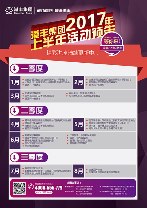 港豐集團(tuán)是全方位海外戰(zhàn)略布局服務(wù)平臺(tái),集離岸注冊(cè)、離岸金融、財(cái)稅服務(wù)、品牌注冊(cè)、公司離岸架構(gòu)籌劃、海外投資、跨境融資、上市咨詢、信托服務(wù)、海外置業(yè)、海外移民、海外稅務(wù)籌劃等業(yè)務(wù)于一體,是國內(nèi)執(zhí)業(yè)的全球離岸策劃領(lǐng)頭企業(yè)?;顒?dòng)現(xiàn)場,港豐除了為客戶提供一場精彩無比的離岸金融稅務(wù)籌劃講座,還為客戶們帶來了不少優(yōu)質(zhì)的海外移民和房產(chǎn)項(xiàng)目。在此,特別感謝為港豐提供海外移民和房產(chǎn)項(xiàng)目支持的合作方!